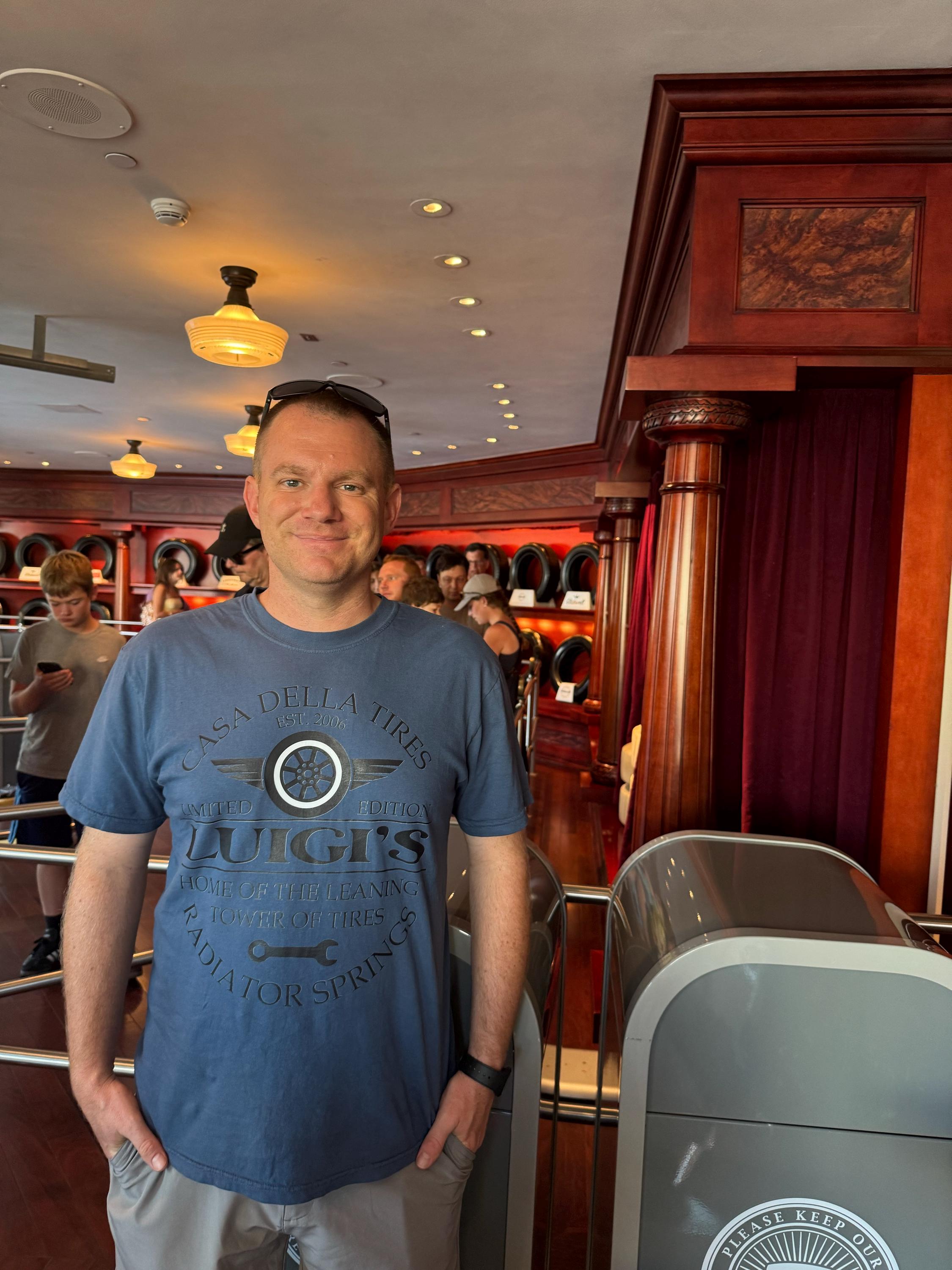 Rev up your style with this Pixar Cars-inspired men’s T-shirt, crafted from high-quality Comfort Colors fabric for that perfect blend of durability and softness. Showcasing Luigi’s “Casa Della Tires” logo, this shirt pays homage to Radiator Springs' very own leaning tower of tires! With its vintage design and distressed look, this tee brings you right into the world of Cars and is perfect for any Pixar fan. Available in a timeless color that complements any wardrobe, this shirt is a comfortable, stylish nod to one of the most beloved animated series.