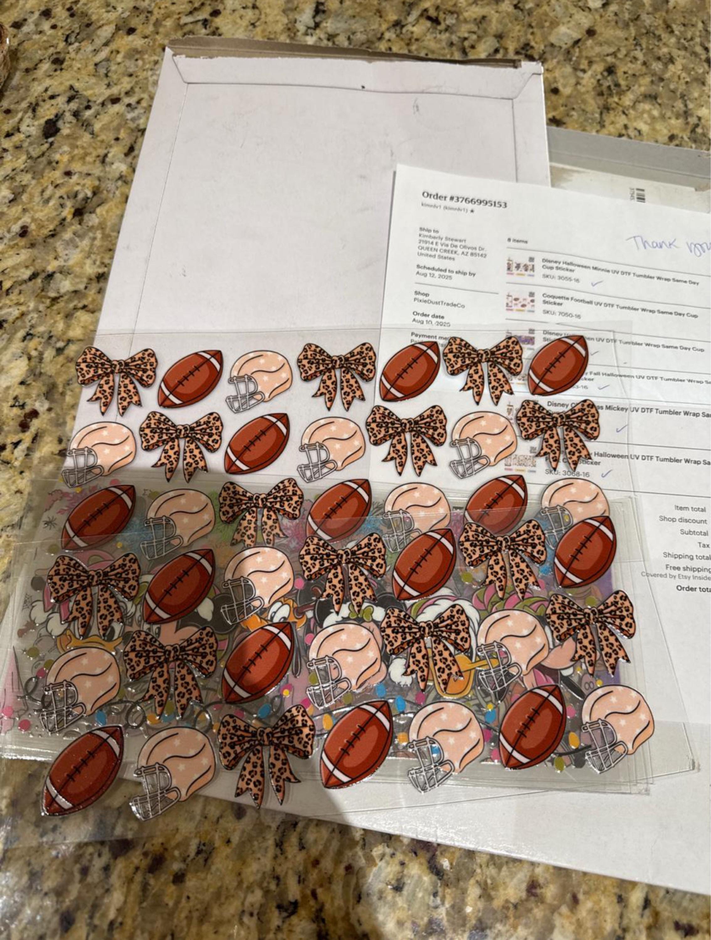 Score big style points with these football-themed UV DTF tumbler wraps—perfect for all the sporty mamas and coquette fans! Whether you love leopard prints or pretty pink bows, these wraps bring the game-day glam to your favorite 16 oz Libbey glass cans. Each wrap is professionally printed, waterproof, and ready to apply—no heat or sealing required!