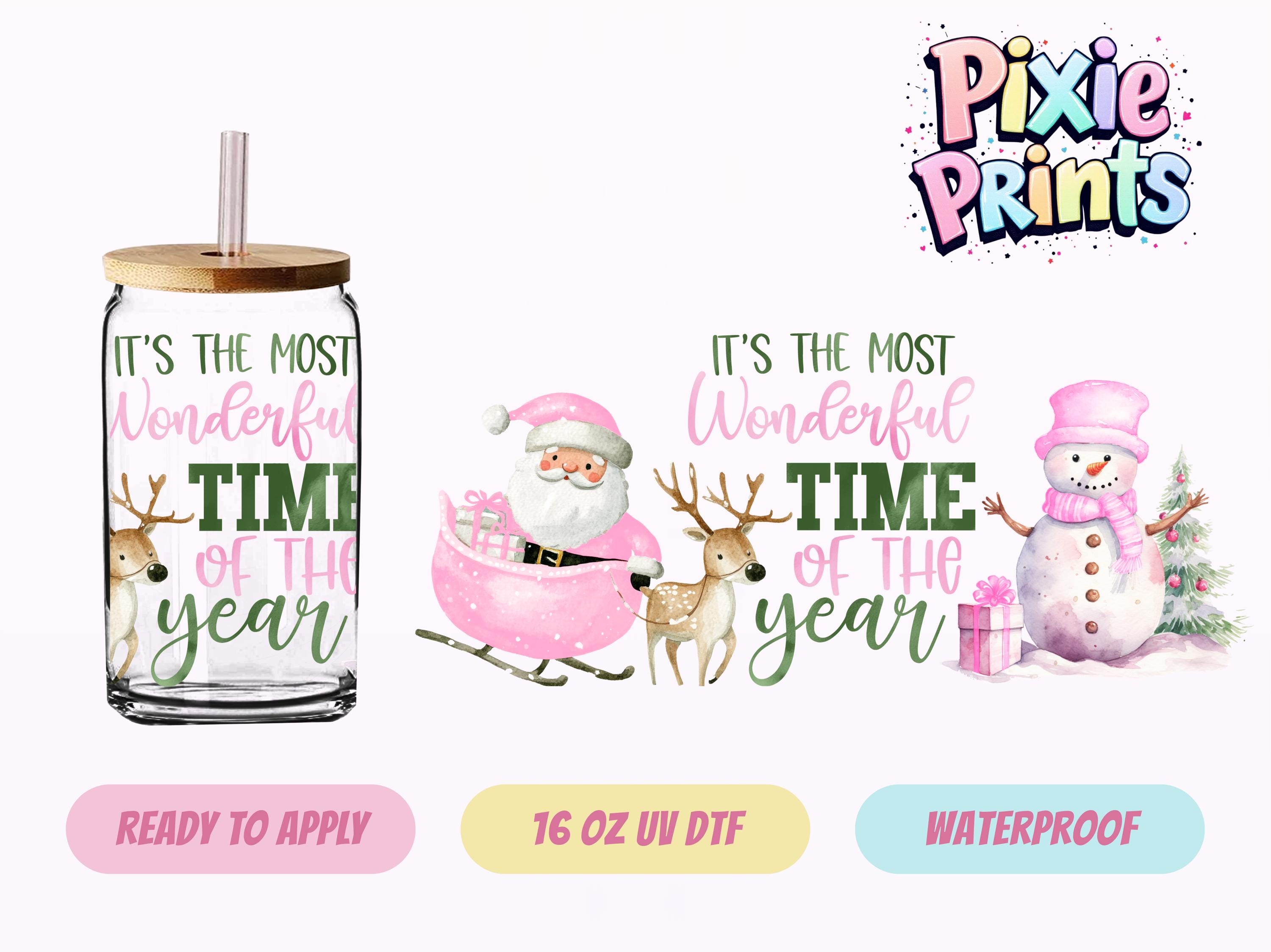 Christmas Pink UV DTF Tumbler Wrap Santa Same Day Cup Sticker