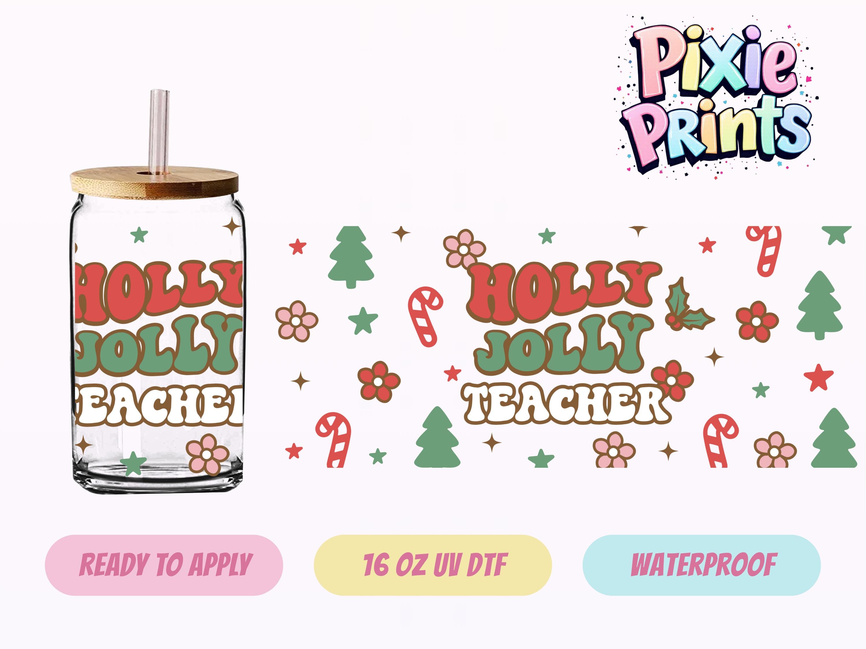 Whimsical Christmas Teacher UV DTF Tumbler Wrap Santa Same Day Cup Sticker