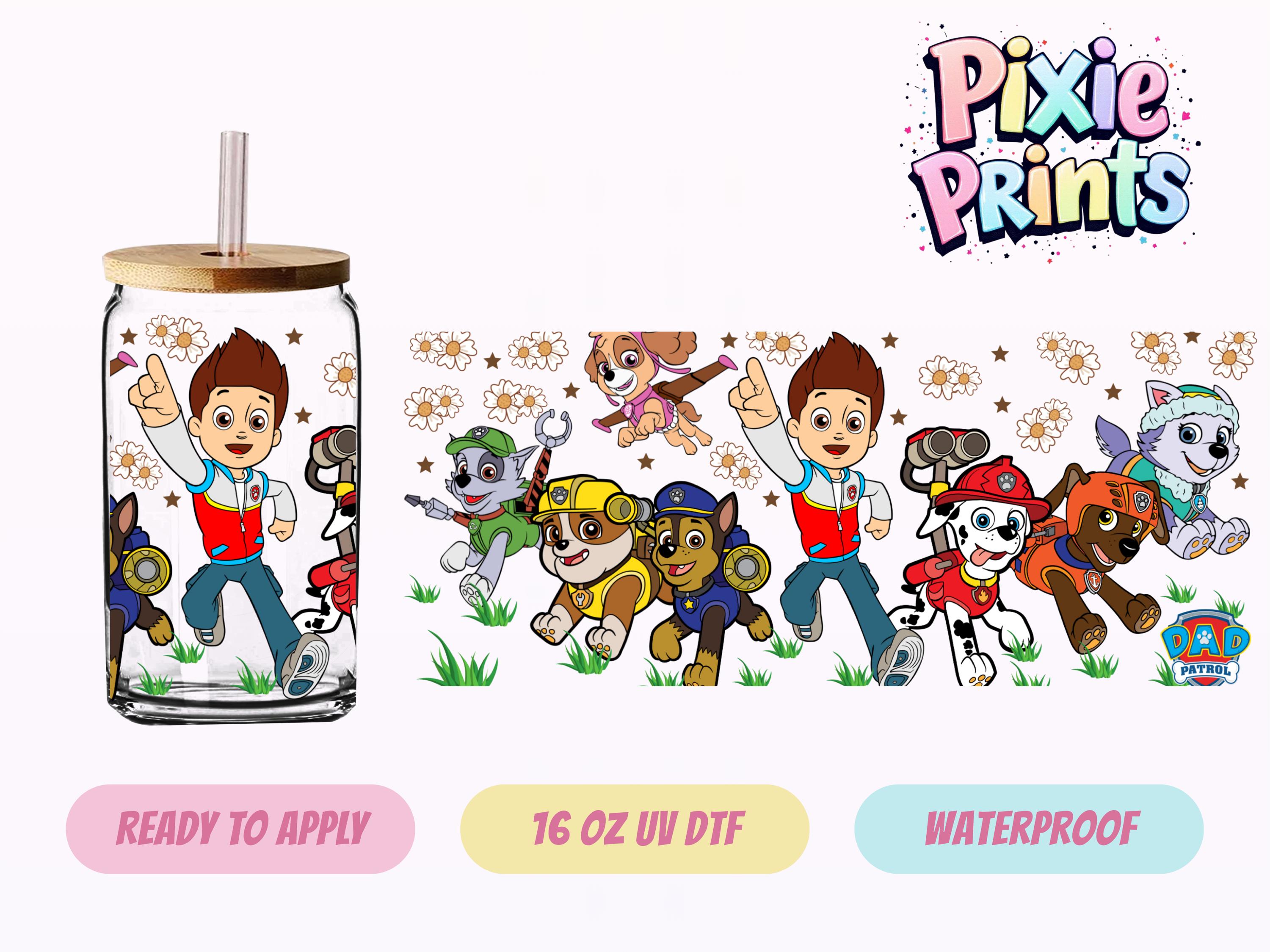Bring your favorite rescue pups to life with this adorable Paw Patrol-themed UV DTF tumbler wrap! Perfect for kids, parents, or anyone who loves these brave little heroes, this ready-to-apply wrap transforms any standard 16 oz Libbey glass into a fun and colorful cup you’ll want to use every day.